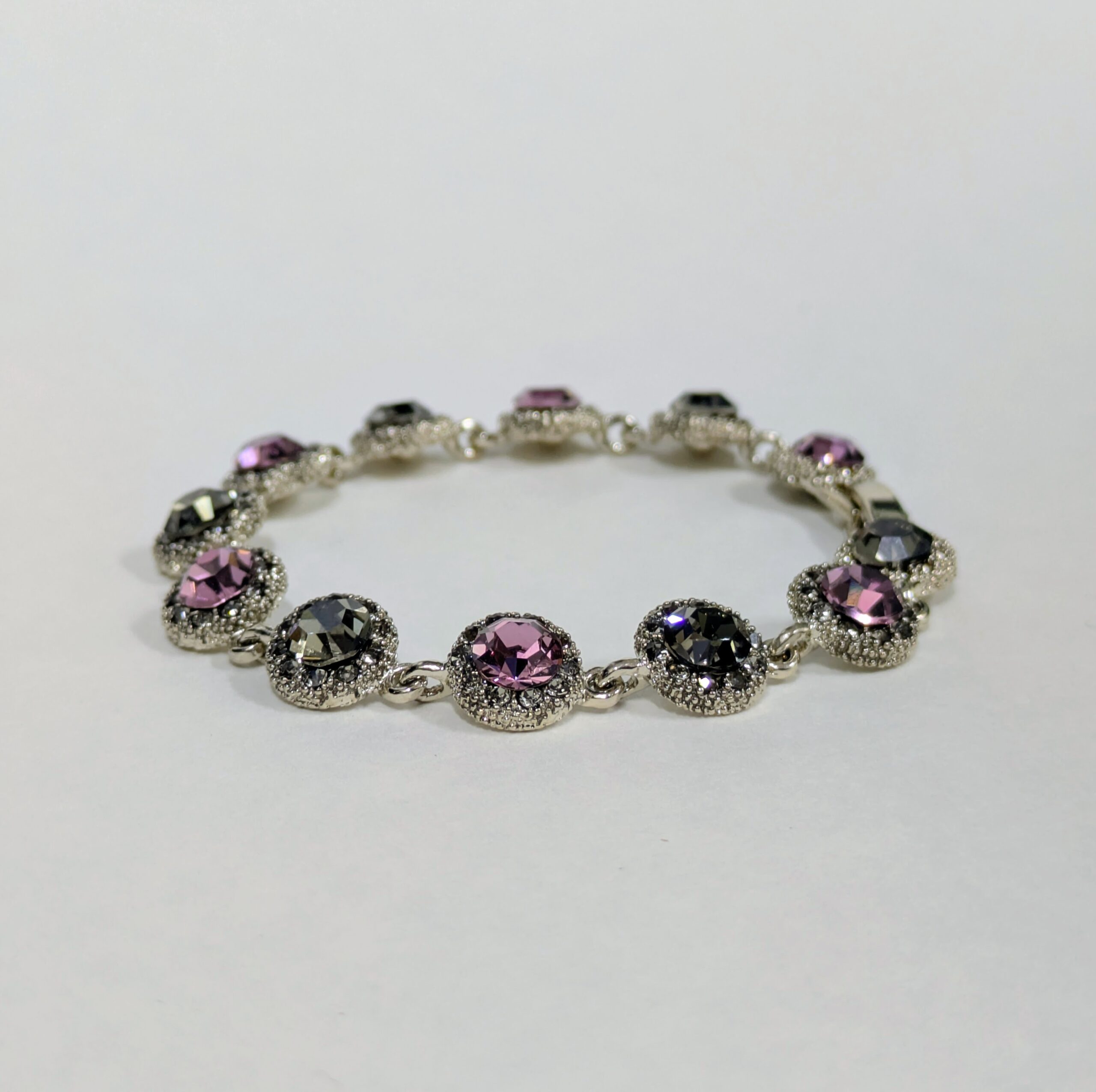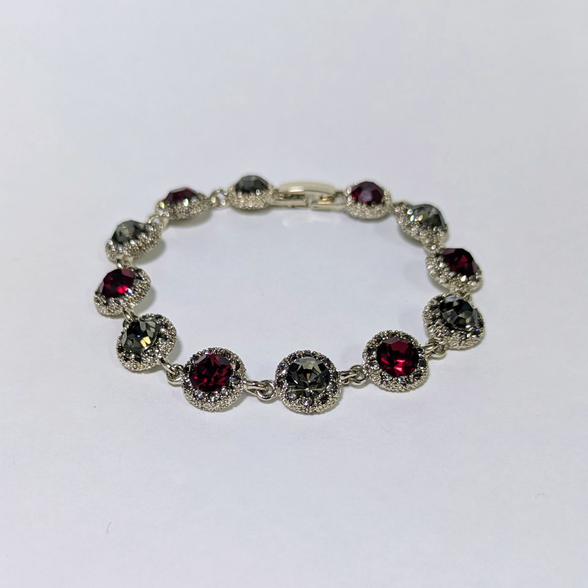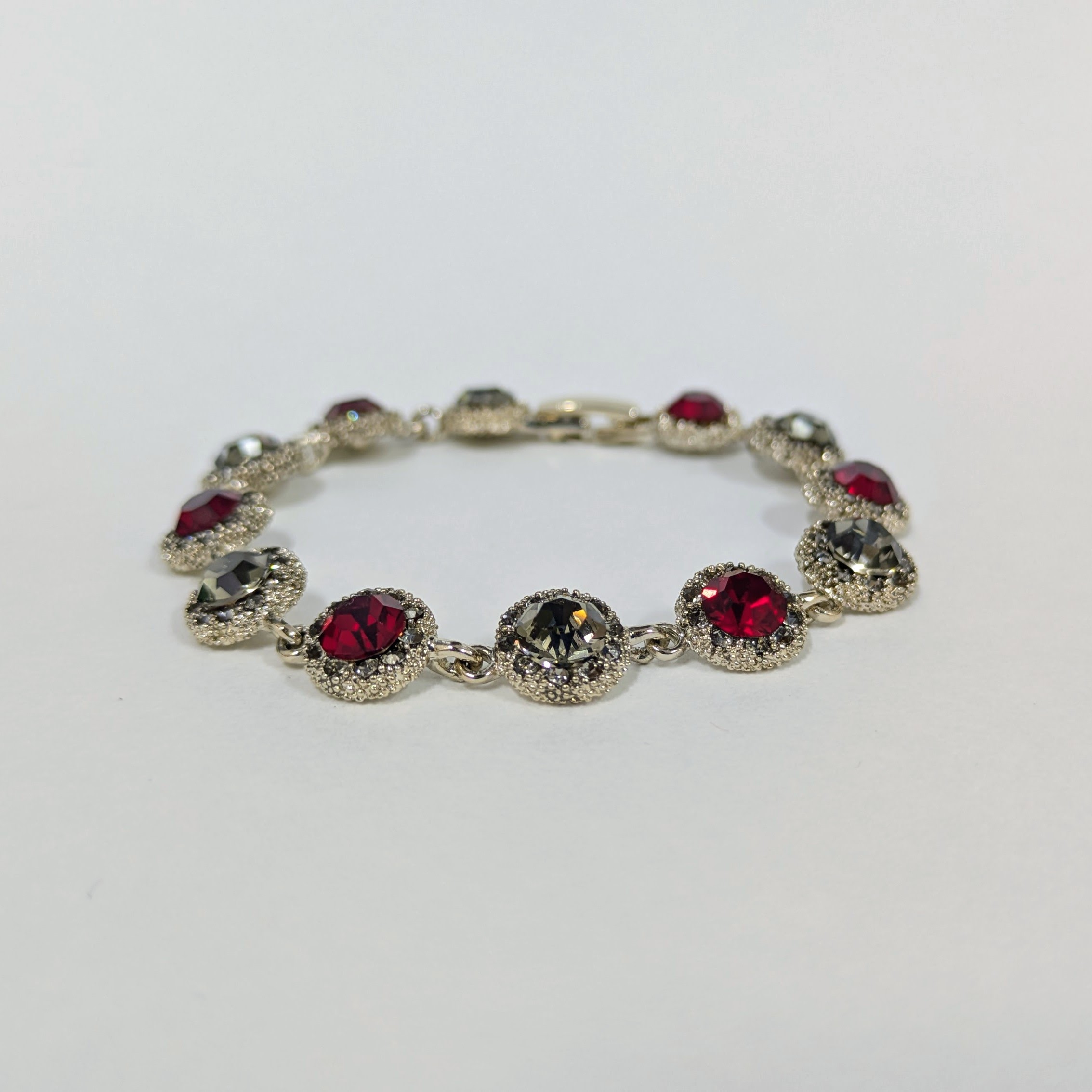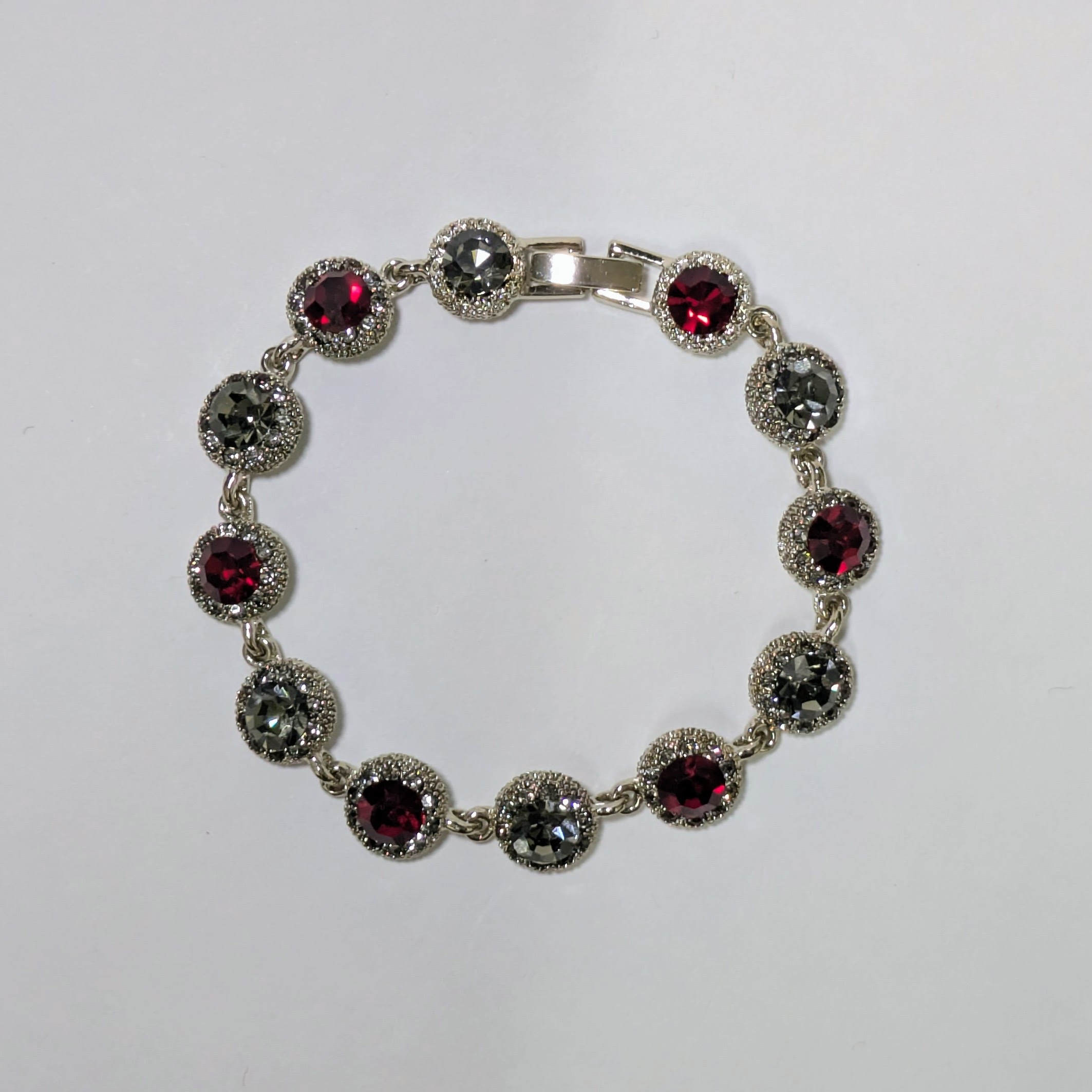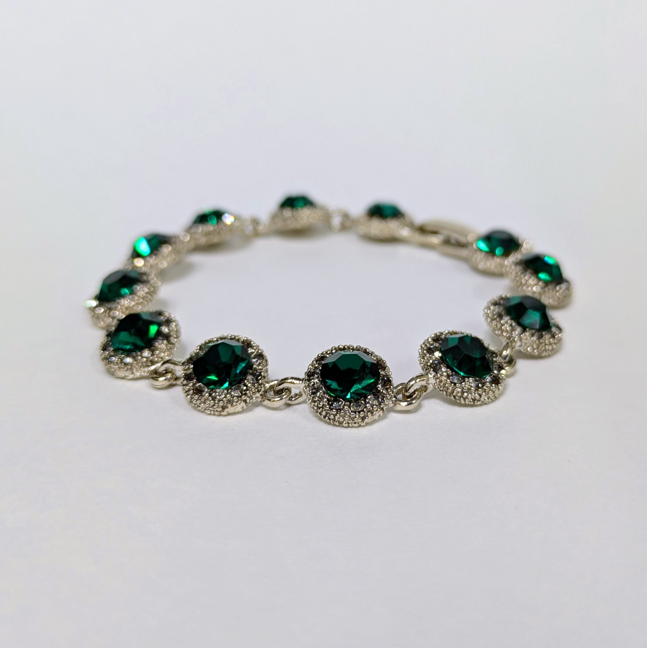 The Gemma Collection Bracelets feature dazzling round-cut crystals in vibrant shades like green, red, pink, navy, grey, and multicolour, all encased in a sparkling silver-tone frame. Elegant yet versatile, these imitation jewellery bracelets add a touch of glamour to both ethnic and western outfits, making them perfect for festive occasions, parties, or everyday sophistication.