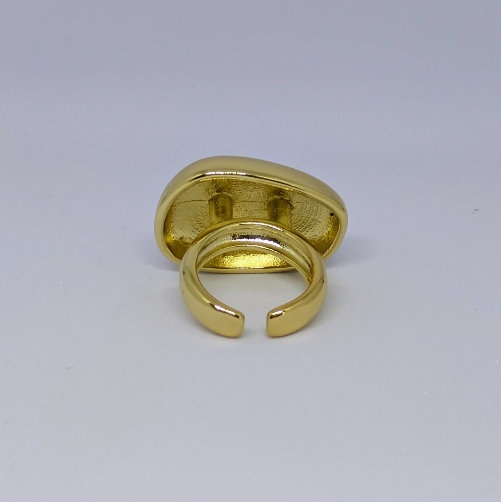 The Pebble Ring is a sleek and contemporary imitation jewellery piece in a smooth gold-tone finish, designed with a bold pebble-inspired shape. Its minimal yet eye-catching look makes it a perfect statement accessory to pair with modern and chic outfits. Lightweight and adjustable, this ring is both stylish and comfortable for everyday wear or special occasions.